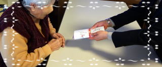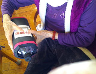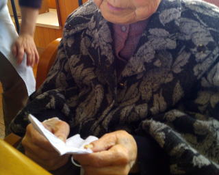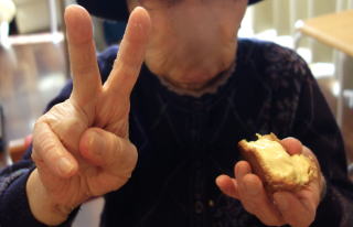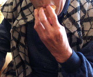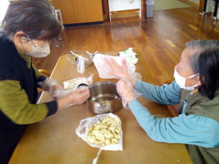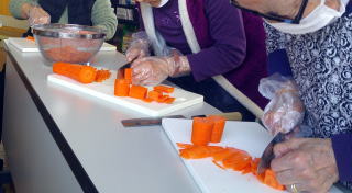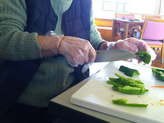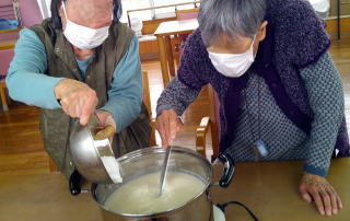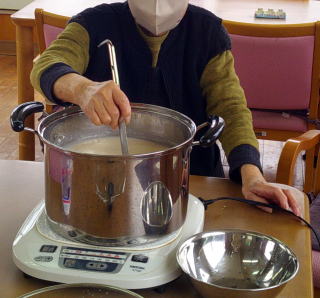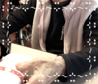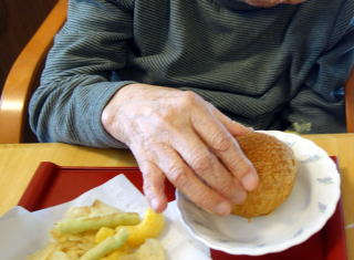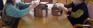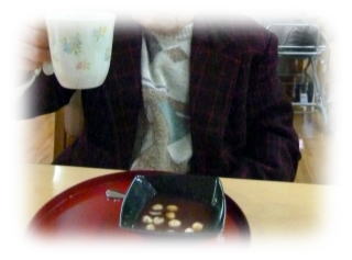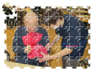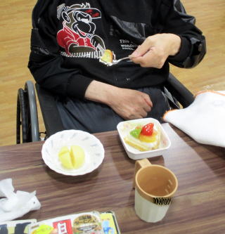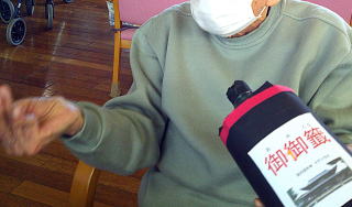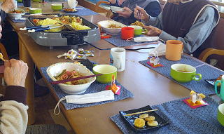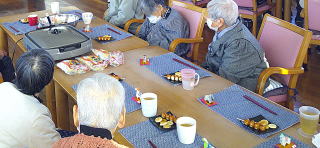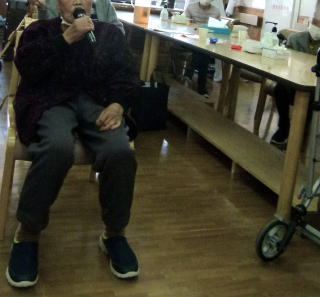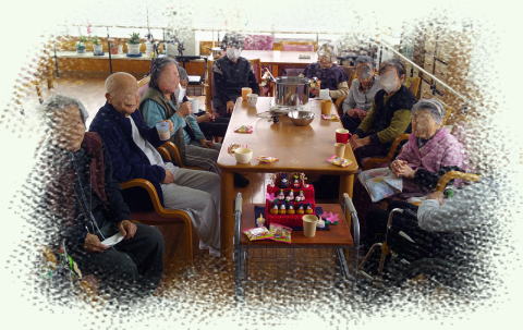 ケアハウス見晴台では、敬老を祝っての会食です。まず、施設長からお祝いの言葉を。