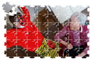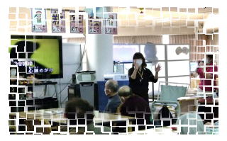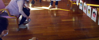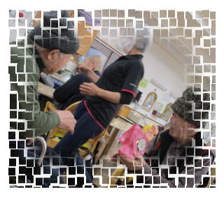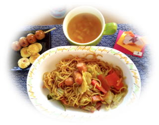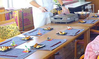 まず最初にケアハウス見晴台の皆さま、視線の先の外には屋台が