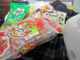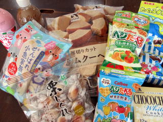 お饅頭の他にはポテトチップスやおせんべい、きなこ餅